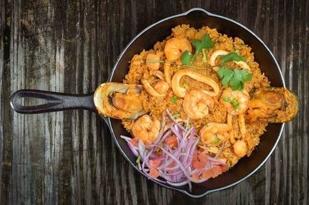 Our best seafood combination of shrimp, squid and scallops, all mixed with rice, red pepper, cilantro, and Peruvian