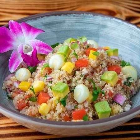 Quinoa, avocado, and mango marinated lightly in lime juice, Peruvian limo chili, and fresh cilantro
