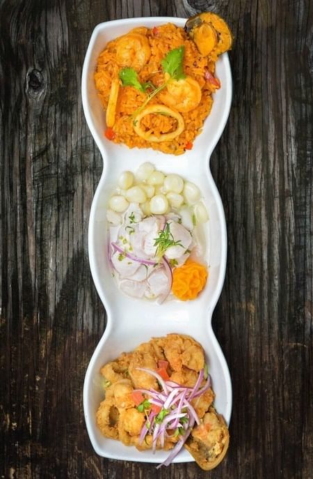 Mini Jalea mixta, arroz con mariscos, and ceviche